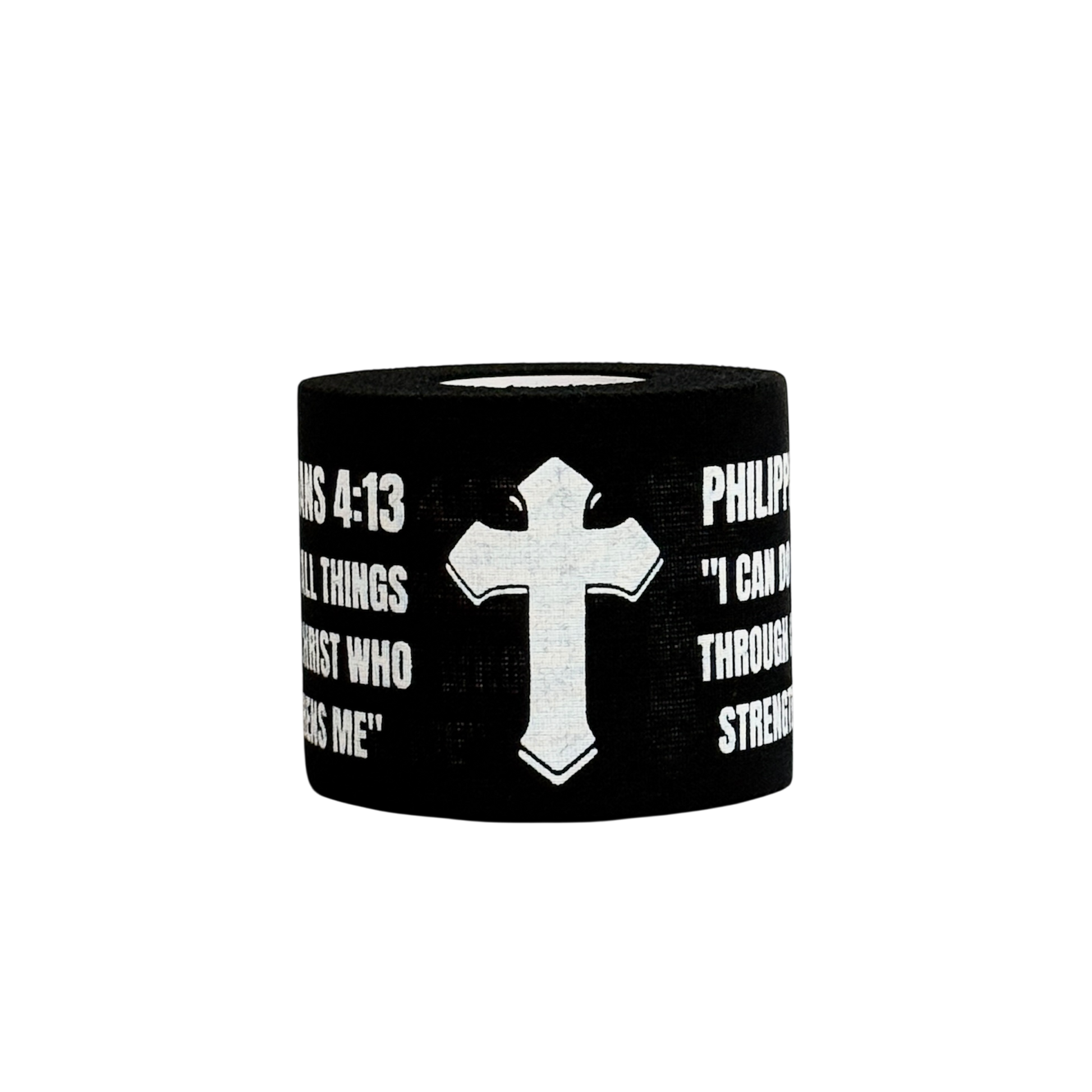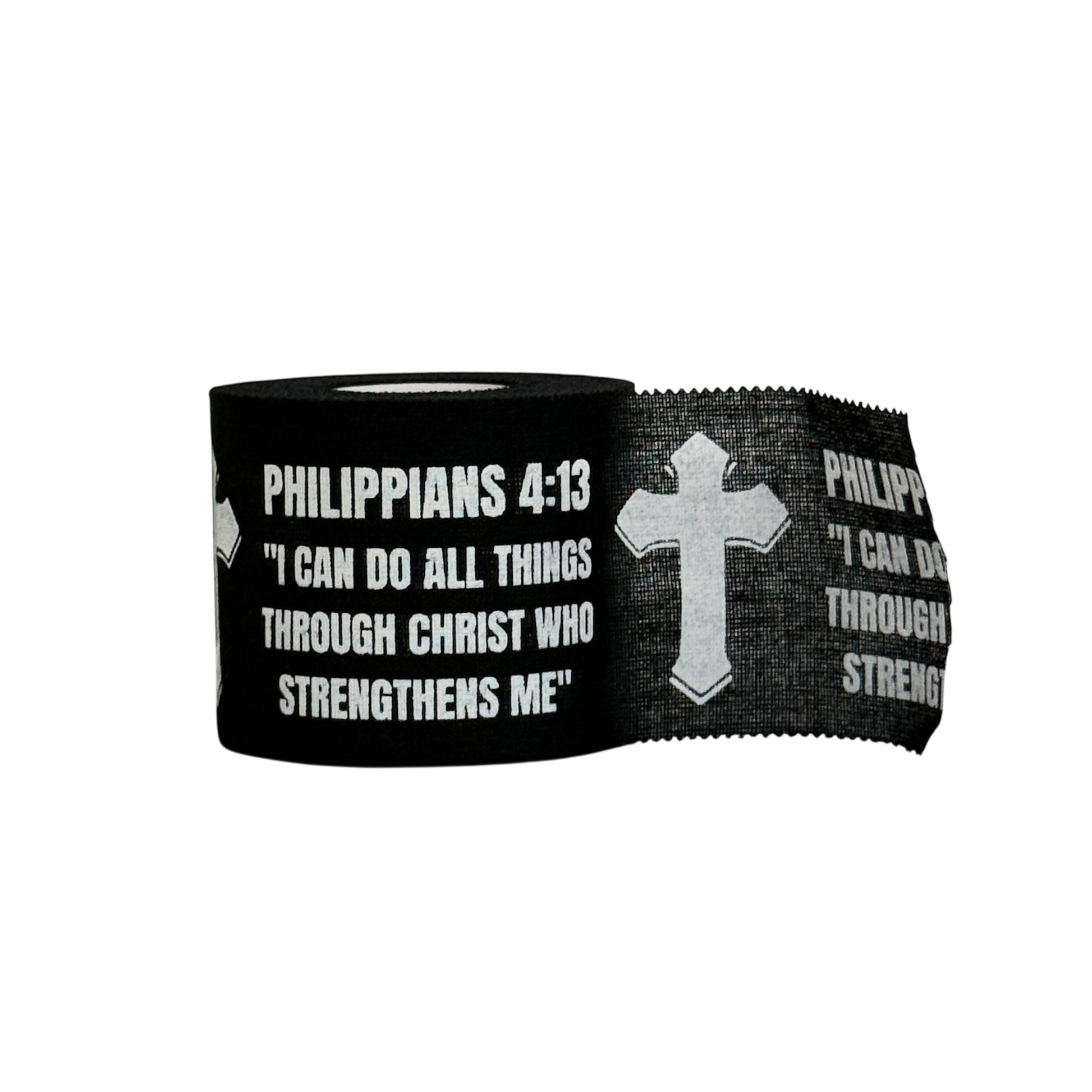What makes this tape truly unique is its dual design. Every wrap gives you the choice: showcase the bold cross front and centre, or reveal the scripture - Philippians 4:13: “I can do all things through Christ who strengthens me.” Two designs in one roll, making every application a personal statement of faith and resilience.