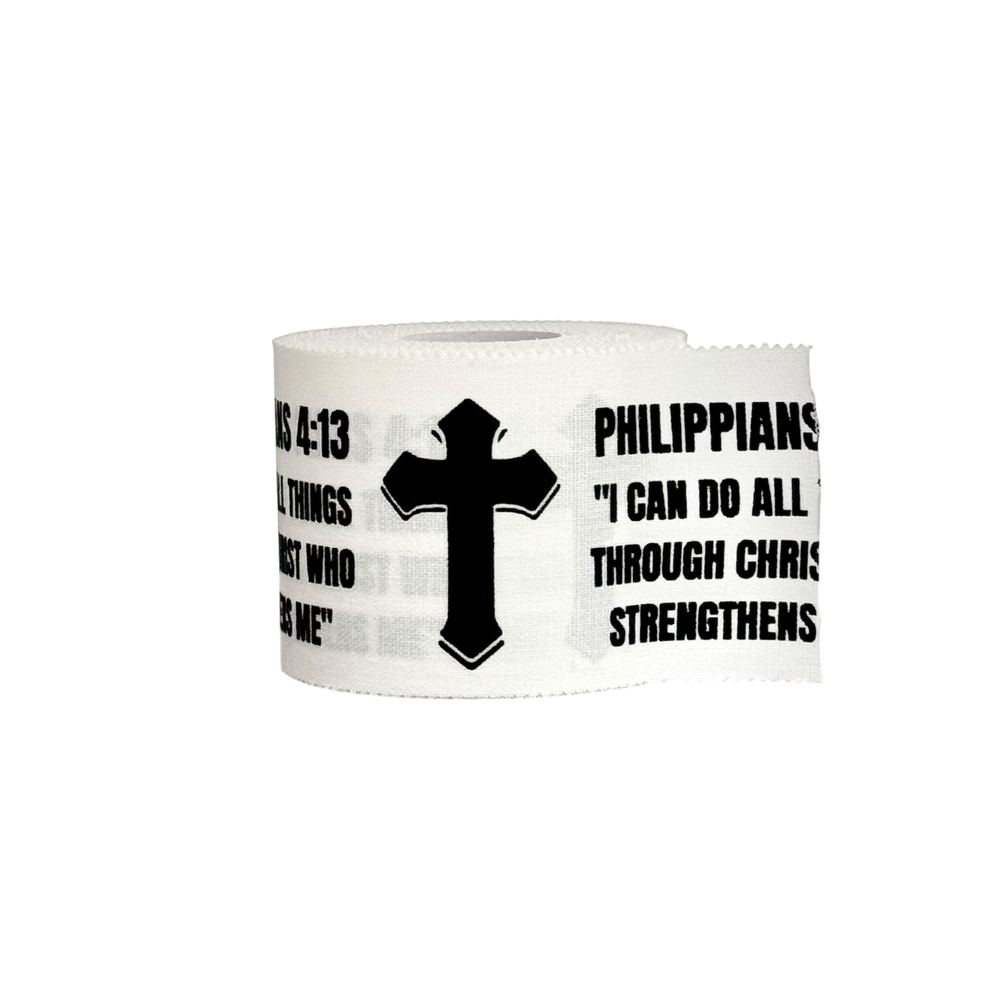 What sets this tape apart is its dual design. Every wrap gives you the choice to showcase the bold cross front and centre or reveal the scripture – Philippians 4:13: “I can do all things through Christ who strengthens me.” Two designs in one roll, allowing every application to be a personal statement of faith, resilience, and strength.